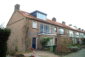 Blok eengezinswoningen in één rij. De woningen zijn niet gespiegeld. De voorgevel is ingedeeld in een smalle travee met eenvoudige voordeurpartij zonder portiek; vervolgens een brede travee met erker, die op de eerste verdieping is uitgevoerd als balkon met een ijzeren balustrade. Op de eerste verdieping, in de smalle travee is een vierkant venster geplaatst. In de brede travee op de eerste verdieping een samengestelde glas pui tot aan de vloer met een balkondeur. In de zijgevel, op goothoogte, geeft een 'teruggelegde' laag in het metselwerk een horizontaal accent. Het blok is voorzien van een aaneengesloten zadeldak met rode pannen. Enkele woningen zijn voorzien van een dakkapel.