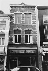 consoles en een geprofileerde kroonlijst. Centraal in het fries zit een kleine vensteropening. Zijgevels:Het pand wordt aan beide zijden begrensd door bebouwing.Achtergevel:De achtergevel is niet zichtbaar vanuit de openbare ruimte.Ruimtelijke indeling:Op een bouwtekening uit 1995 is de indeling van het pand als volgt weergegeven: De begane grond is geheel in gebruik als winkel. In een gang tegen de rechter zijmuur van het voorhuis bevindt zich de opgang naar de eerste verdieping (1935). Deze trap loopt door tot de zolderverdieping. Zowel op de eerste als op de tweede verdieping is tijdens een verbouwing in 1995 een appartement gemaakt. Hiervoor is de oorspronkelijke indeling van rond 1900 op enkele plaatsen gewijzigd. In het voorhuis is tegen de linker zijgevel een rookkanaal.Constructies:In de beschrijving van de afdeling BAM uit 1992 wordt het volgende gemeld over de constructies van het pand: Het voorhuis heeft een enkelvoudige verdiepingsbalklaag met plaatselijk stalen binten. De verdiepingsbalklaag van het achterhuis bestaat uit drie vakken moer- en kinderbalken, mogelijk laatmiddeleeuws. De balklaag is geel geschilderd en heeft een stookplaatsraveling aan de linker zijde. In het midden van de balkvakken zitten onderslagbalken (vermoedelijk een secundaire toevoeging). Over de overige balklagen in het pand is geen documentatie voorhanden. De kap van het voorhuis heeft schaarspanten (ca. 1900). Over de zijmuren van het gebouw is geen documentatie voorhanden. Waarschijnlijk heeft het pand gemeenschappelijke zijmuren met de buurpanden.Interieurelementen:Uit de beschrijving uit 1992 blijkt dat er in het pand nog diverse waardevolle interieurelementen uit ca. 1900 aanwezig zijn. Zo heeft de trap op de verdiepingen een geornamenteerde trappaal en balusters en zijn er nog oorspronkelijke paneeldeuren in het pand aanwezig. De voorkamer op de eerste verdieping heeft een geornamenteerd stucplafond en een zwartmarmeren schoorsteenmantel. De voorkamer op de tweede verdieping heeft een eenvoudig geornamenteerd stucplafond en eveneens een zwartmarmeren schoorsteenmantel.Erf, bijgebouwen, diversen: | 3 |