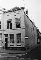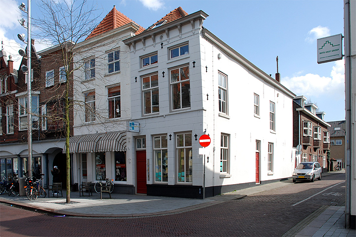 17e eeuws hoekhuis. Achter de witgepleisterde lijstgevel uit de 19e eeuw zit nog steeds het volledig 17e eeuws pand verscholen. Tijdens de restauratie in 1994 werden fraaie plafondschilderingen ontdekt, eveneens 17e eeuws, echter pas na de bouw aangebracht. Zij bevinden zich nog steeds achter de verlaagde plafonds.