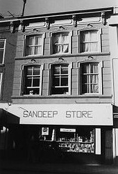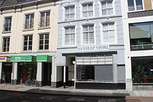 begane grond is geheel links in het pand een lange gang gesitueerd met links daarvan respectievelijk de winkel, het trappenhuis naar boven en vervolgens weer winkelruimte. Op de verdieping zijn de woonvertrekken. In het voorhuis bevinden deze vertrekken zich dus gedeeltelijk boven de twee zijsteegjes. Constructies:Over de constructie van het pand is geen documentatie voorhanden. De (hoge) plaatsing van de staafankers in de gevels duidt echter op de (oorspronkelijke) aanwezigheid van samengestelde balklaag op de verdieping. Verder is het duidelijk dat het gebouw eigen (oude) zijmuren heeft.Interieurelementen:Over eventuele monumentale interieurelementen is geen documentatie voorhanden.Erf, bijgebouwen, diversen:Op het achtererf is links (gezien vanaf de voorgevel) tegen de achtergevel een smalle éénlaags achterbouw met plat dak geplaatst. Waarschijnlijk dateert deze uit het eerste kwart van de 20ste eeuw. | 4 |