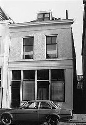 schuifraam bevat. Het venster rechts hiervan is voorzien van een 6-ruits raam en op de begane grond is een liggend venster met diefijzers gesitueerd. Ter plaatse van de verdiepingsvloeren zijn staafankers te zien, die duiden op de (oorspronkelijke) aanwezigheid van een samengestelde balklaag.