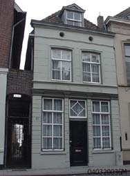 De gepleisterde voorgevel (XIX A) met horizontale getrokken voegen heeft een door een gekorniste kroonlijst met tandlijst afgesloten winkelpui met in het midden een paneeldeur met snijlicht, die aan weerszijden gekoppeld is aan een 8-ruits schuifraam; een cordonlijst en twee getoogde vensters met 6- ruits schuiframen en geprofileerde stucwerkomlijsting op de verdieping, en is afgesloten door een kroonlijst met in het fries twee ronde vensters en erboven een dakkapel met fronton en 4-ruits schuifraam.