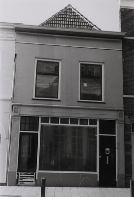 De twee vensterassen brede lijstgevel is geheel gepleisterd. In de begane grond is grotendeels nog een laat 19de-eeuwse winkelpui zichtbaar. Pilasters met cannelures dragen de puibalk. Links en rechts van het centraal gelegen etalagevenster, een ingang. De linker is de voormalige winkelingang, de rechter de ingang tot de bovenwoning. Zowel deze ingangen als het etalagevenster dateren uit de jaren dertig van de 20ste eeuw. De bovenlichten van de ingangen zijn net als het bovenlicht van het etalagevenster voorzien van wit kathedraalglas. Op de verdieping zijn twee vensters zichtbaar. De kozijnen van deze vensters hebben een duivejagerprofilering en toognagels. De valramen in deze kozijnen zijn nieuw. Het glas-in-lood in de bovenlichten dateert waarschijnlijk uit de jaren dertig van de 20ste eeuw. De gevel wordt afgesloten door een gepleisterde fries en een houten kroonlijst.