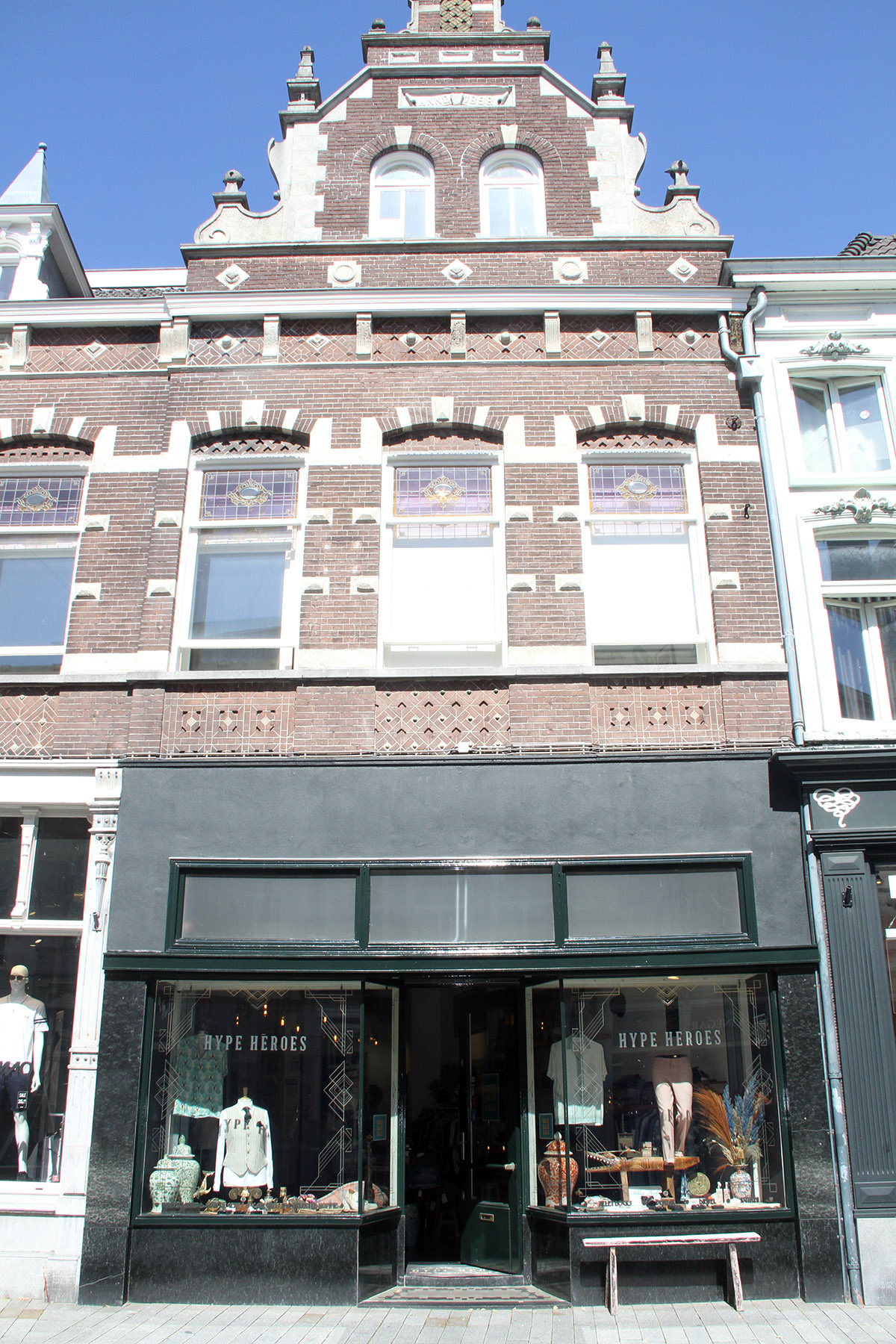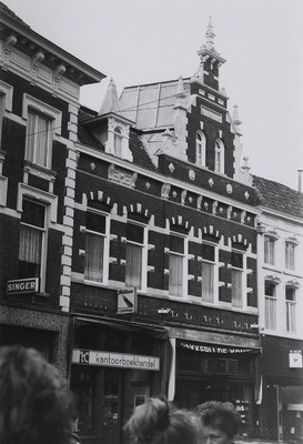 BeschrijvingAlgemeen:Dit neo-renaissance pand uit 1898 is gelegen in een gesloten gevelrij aan de noordwestzijde van de Vughterstraat. Het gebouw heeft een trapeziumvormig grondplan en bestaat uit twee delen die beide vier niveau’s omvatten: een kelder, een begane grond, een eerste verdieping en een zolder. Het linkerdeel van het pand is voorzien van een met gesmoorde kruispannen gedekt, afgetopt schilddak, het rechterdeel heeft achter de topgevel een afgetopt schilddak dat met koper gedekt is en tot het dak van het rechterdeel doorloopt.Voorgevel:In de in kruisverband gemetselde voorgevel zijn op de begane grond en de zolderverdieping de twee delen van het gebouw goed te onderscheiden. Het linkerdeel is voorzien van een kroonlijst, het rechterdeel is risalerend en heeft een rijkgedecoreerde topgevel. De winkelpui in het linkerdeel is rijk gedecoreerd. De oorspronkelijke gevelindeling op begane grond niveau is in het rechterdeel van de gevel verloren gegaan ten behoeve van een twintigste-eeuwse winkelpui. Het eerste verdiepingniveau vormt een geheel en is vijf venster-assen breed. Elke vensteropening is voorzien van een getrapte segmentboog met stenen accenten. De sluitsteen en de natuurstenen blokken in de dagkanten hebben een diamantkop. De hardstenen onderdorpels van de vensteropeningen zijn opgenomen in een hardstenen waterlijst. Onder de vensteropeningen bevindt zich een verdiept vlak met siermetselwerk en hardstenen decoraties. De vensters zelf zijn oorspronkelijk. De geprofi-leerde kozijnen zijn voorzien van een groot schuivend onderraam en een glas-in-lood bovenlicht. Het kozijnhout is voorzien van kapelletjes en een golfje. De gevel is op eerste verdiepingniveau voorzien van twee speklagen, de eerste net boven de waterlijst, de tweede sluit aan precies onder de aanzetstenen van de segmentbogen. De lijst die het linkerdeel van de gevel afsluit bestaat uit diagonaal geplaatst siermetselwerk met een enkel accent in natuursteen. In het midden van de lijst bevindt zich een gestucwerkt paneel. De geprofileerde bakgoot wordt gedragen door vier consoles. Deze kroonlijst is over het rechterdeel van de gevel voortgezet. De lijst is hier voorzien van zeven consoles. Boven de lijst zijn in het metselwerk vijf decoratieve elementen in steen ingemetseld. De geveltop is voorzien van twee rondboogvensters. De steensboog boven de vensters heeft een hardstenen sluitsteen. De vensters hebben een tweeruits onderraam en een bovenlicht. Boven de vensters bevindt zich een gevelsteen die het bouwjaar ‘anno 1898’ vermeldt. De vleugelstukken zijn rijk gedecoreerd met ondermeer obelisken. De smalle tuit van de gevel is voorzien van een rondboognis die gevuld is met diagonaal siermetselwerk in gele bak | 1 |