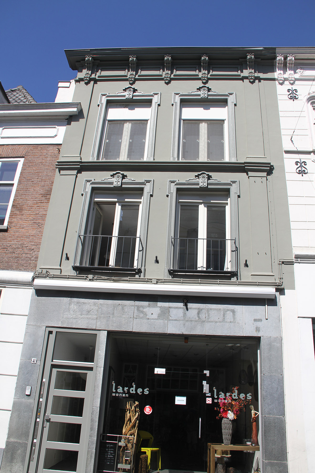 Context(Bouw)historie:Het pand Vughterstraat 41 stond vroeger bekend onder de naam “Het Verguld Hekken” (naar het vergulde hek dat destijds onder het venster op de eerste verdieping zat). Het pand werd in 1760 door koperslager Th. Luyckx gekocht. Behalve dit huis aan de Vughterstraat stond op dit perceel ook een pand aan de achterliggende Postelstraat. Dit huis werd in 1761 door Luyckx gekocht. In de eerste helft van de 19de eeuw was dit gebouw in gebruik als speldenfabriek. Rond 1910 was het in gebruik als magazijn van de firma Gulick Luyckx. Het ernaast gelegen “Gele Huis” deed in 1910 dienst als stal en koetshuis van de firma. Deze bebouwing aan de Postelstraat hoort nu niet meer bij Vughterstraat 41. Waarschijnlijk is het perceel in de tweede helft van de 19de eeuw opgedeeld. Van 1797 tot 1800 werd in het pand Vughterstraat 41 het Heilige Sacrament van Mirakel van Heckenrode door de koopman in spelden Simon Antonius Luyckx bewaard.Dit oude pand werd in de tweede helft van de 19de eeuw verbouwd en voorzien van een nieuwe voorgevel. De winkelpui van deze 19de-eeuwse gevel is 1964 vernieuwd. De begane grond is ook tegenwoordig nog in gebruik als winkel en op de verdiepingen wordt gewoond. Ligging:Het gebouw ligt aan de noordwestelijke zijde van de Vughterstraat in een flauwe bocht, in het gebied tussen de eerste ommuring uit de 13de eeuw en de tweede ommuring uit de 14de eeuw. Het perceel liep tot halverwege de 19de eeuw door tot aan de Postelstraat. Het geheel aan de Vughterstraat is onderdeel van een gevelwand met voornamelijk 19de-eeuwse lijstgevels. Veel van deze panden aan de Vughterstraat hebben een oudere, soms zelfs middeleeuwse, kern. Door de eeuwen heen is de Vughterstraat, die in opzet een stadsuitbreiding uit de 14de eeuw is en vanuit het zuiden van ’s-Hertogenbosch naar de Markt loopt, een belangrijke uitvalsweg geweest met grote economische activiteiten. Hierdoor is de hoofdbebouwing aan deze straat door de tijd heen sterk gewijzigd en vernieuwd.BeschrijvingAlgemeen (hoofdvorm, kap):Het pand bestaat uit een voorhuis dat via het trappenhuis verbonden is met het achterhuis en een kleine, bebouwde achterplaats. Onder het middendeel ligt een kelder (vermoedelijk aangelegd in 1919). Het voorhuis omvat een begane grond, twee verdiepingen en een zolder onder een zadeldak met dakschild aan de voorzijde. Dit dak, nok haaks op de voorgevel, is gedekt met gesmoorde Hollandse pannen. Het achterhuis heeft een begane grond, verdieping en zolder onder een zadeldak met dakschild aan de achterzijde. Ook dit dak is gedekt met gesmoorde pannen.Voorgevel:De twee vensterassen brede voorgevel (XIXB) is gepleisterd en heeft op de begane grond een pui uit 1964. Links bevindt zich de toegang tot de bovenwoning en rechts hiervan is een grote gevelopening met glas en de winkelingang. De pui is bekleed met natuursteen. Boven de pui heeft de gevel hoekpilasters. De voorgevel lijkt in dezelfde periode tot stand te zijn gekomen als de voorgevel van het rechter buurpand. De verdiepingen worden visueel van elkaar gescheiden door een geprofileerde kordonlijst. Op de eerste en tweede verdieping twee vensters met vernieuwde draairamen. De bovenlichten zijn dichtgezet. De vensters op de eerste verdieping zijn voorzien van hekwerkjes (1964). Alle vensters op de verdiepingen hebben een geprofileerde omlijsting en een kuifje. De gevel wordt afgesloten door een hoofdgestel met architraaf, een fries met velden en geornamenteerde consoles met daarboven een geprofileerde kroonlijst. | 2 |