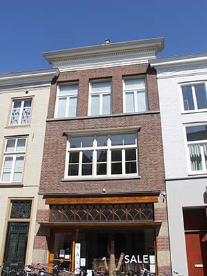 In het begin van de 17e eeuw stond het pand Vughterstraat 85 bekend onder de huisnaam ‘De Witte Zon’ . In die tijd was op het perceel een bierbrouwerij gevestigd. Rond het tweede kwart van de 19e eeuw werd het verbouwd tot herenhuis. Dit werd in 1907 omgezet in een winkel-woonhuis, met op de begane grond en de verdieping een winkel in meubilerings- en behangselstoffen. Ondanks vele verbouwingen zijn er nog onderdelen van de oude kern bewaard gebleven: zoals de kelders en een deel van de samengestelde verdiepingsbalklaag van het vaste achterhuis. Het gebouw staat geregistreerd als gemeentelijk monument. Het geheel omvat een hoofdpand, bestaande uit een voorhuis met vast achterhuis, een binnenplaats, los achterhuis met achtererf en een werkplaats aan de Binnendieze. Het voorhuis bestaat uit een kelder, begane grond, twee verdiepingen en een zolder met borstwering. Het achterhuis bestaat uit een kelder, begane grond, twee verdiepingen en een zolder met borstwering. Het losse achterhuis heeft een kelder, begane grond, verdieping en een zolder onder een plat dak. De voorgevel is opgetrokken in schoon metselwerk en heeft op de begane grond een winkelpui uit 1948 (gewijzigd in 1980). Rechts is de winkelingang en links hiervan is een groot etalagevenster met direct erboven een kroonlijst. Het brede bovenlicht is dichtgezet. Een hardstenen kordonlijst vormt visueel een scheiding tussen de eerste en tweede verdieping. Op de plaats van de tweede verdieping is het oorspronkelijk 19e-eeuwse metselwerk en de gevelindeling gehandhaafd met drie vensters met T-draairamen. Boven deze vensters is een strekse boog. De voorgevel wordt afgesloten door een hoofdgestel met architraaf, fries, tandlijst en eierlijst en een kroonlijst. De kelder van het voorhuis is via de achterkelder van het achterhuis toegankelijk en heeft een tongewelf in de langsrichting. Alle balklagen in het voorhuis zijn enkelvoudig. De zolderbalklaag en de kap zijn in 1948 vernieuwd. De kelder van het achterhuis, toegankelijk vanaf de binnenplaats, heeft een tongewelf in de langsrichting. De eerste verdiepingsbalklaag bestaat uit drie vakken moer- en kinderbalken. De overige balklagen in het achterhuis zijn enkelvoudig. De kap, die een geheel vormt met de voorkap, dateert uit 1948. De kelder van het losse achterhuis is dichtgestort. De balklagen van het achterhuisje zijn enkelvoudig. In 1918 is het voorste gedeelte met een verdieping en een plat dak verhoogd. |