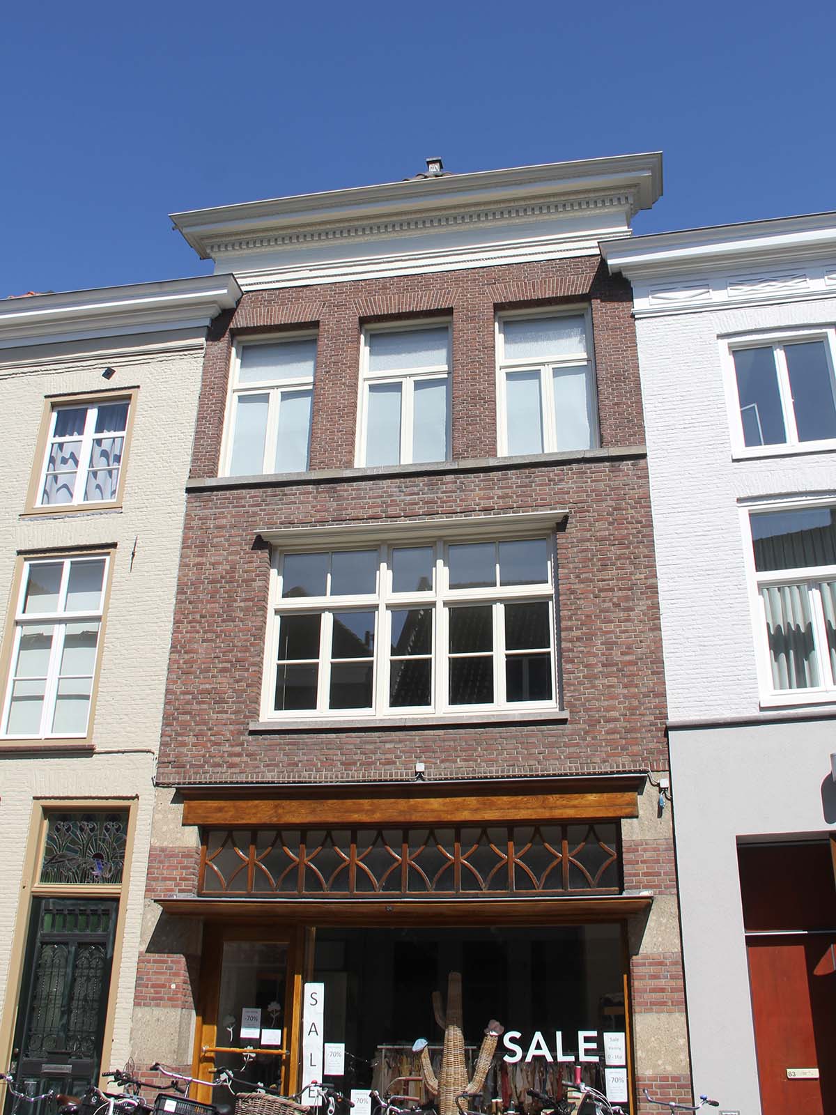 Context(Bouw)historie:Het pand Vughterstraat 85 stond in het begin van de 17e eeuw bekend onder de naam “De Witte Zon”. Vroeger was op het perceel een bierbrouwerij gevestigd. Rond het tweede kwart van de 19e eeuw werd het gebouw verbouwd tot herenhuis. Dit herenhuis is in 1907 verbouwd tot winkel-woonhuis met op de begane grond en de verdieping een winkel in meubilerings- en behangselstoffen. Ondanks de vele verbouwingen die het pand in de loop der eeuwen heeft ondergaan zijn er nog onderdelen van deze oude kern bewaard gebleven, zoals de kelder(s) en een deel van de samengestelde verdiepingsbalklaag van het vaste achterhuis. Het losse achterhuis met kelder is in 1918 en 1927 vergroot en in de indeling van het hoofdpand is tijdens verbouwingen in 1907 (verbouwing van woonhuis naar winkel) en 1918 gewijzigd. In 1948 werden behalve het uitvoeren van wijzigingen in het interieur ook de zolderbalklaag van het voorhuis, de kap van het voor- en achterhuis en de top van de achtergevel vernieuwd. Dit was nodig in verband met oorlogsschade. Ook de winkelpui en het venster op de eerste verdieping in de voorgevel dateert uit 1948.Ligging:Het pand ligt op een langgerekt smal perceel aan de noordelijke zijde van de Vughterstraat, binnen de tweede ommuring uit de 14e eeuw en vlakbij de voormalige Vughterbinnenpoort (gesloopt begin 19e eeuw). Aan de achterzijde grenst het perceel aan de Dieze en is er een poortje aan de Capucijnenpoort. Het geheel is onderdeel van een gevelwand aan de Vughterstraat met voornamelijk 19e-eeuwse gevels. Veel van deze panden aan deze straat hebben een oudere, soms middeleeuwse, kern. Door de eeuwen heen is de Vughterstraat, die in opzet een stadsuitbreiding uit de 14e eeuw is en vanuit het zuiden van ’s-Hertogenbosch naar de Markt loopt, een belangrijke uitvalsweg geweest met grote economische activiteiten. Hierdoor is de hoofdbebouwing aan deze straat door de tijd heen sterk gewijzigd en vernieuwd.BeschrijvingAlgemeen (hoofdvorm, kap):Het huis omvat een hoofdpand, bestaande uit een voorhuis met vast achterhuis, een binnenplaats, los achterhuis met achtererf en een werkplaats aan de Dieze. Het voorhuis bestaat uit een kelder, begane grond, twee verdiepingen en een zolder met borstwering. Het achterhuis bestaat uit een kelder, begane grond, twee verdiepingen en een zolder met borstwering. Het losse achterhuis heeft een kelder, begane grond, verdieping en zolder onder een plat dak.Voorgevel:De voorgevel is opgetrokken in schoon metselwerk en heeft op de begane grond een winkelpui uit 1948 (gewijzigd in 1980) met recht de winkelingang en links hiervan een groot etalagevenster met direct erboven een kroonlijst. Het brede bovenlicht is dichtgezet.Het metselwerk op de eerste verdieping dateert, net als het brede 15-ruits venster met hardstenen dorpel en kroonlijstje, uit hetzelfde jaar. | 2 |