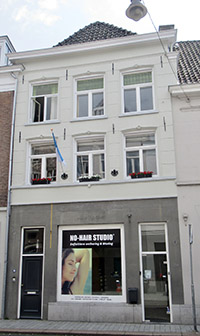 Hierbij werd de houten winkelpui verwijderd en werd de begane grond samengetrokken met die van het rechter buurpand. Tijdens een verbouwing van beide panden in 1985 werd de tussenmuur weer teruggebracht. Daarnaast werd de kap van het voorhuis vernieuwd. De begane grond werd ingericht als winkel, terwijl er op de twee verdiepingen een woning werd gerealiseerd. Het pand staat geregistreerd als gemeentelijk monument. Het object bestaat uit een voorhuis met vast achterhuis en achterbebouwing aan de Binnendieze. Het voorhuis heeft een begane grond, een eerste en tweede verdieping en een zolderverdieping met borstwering. Het zadeldak met voordakschild ligt haaks op de voorgevel en is gedekt met gemoorde Hollandse pannen. Het vaste achterhuis bestaat uit een begane grond, eerste en tweede verdieping en een zolder onder een zadeldak met gesmoorde Hollandse pannen. De drie vensterassen brede voorgevel is gepleisterd en op de verdiepingen voorzien van schijnvoegen. De pui op de begane grond is geheel nieuw, met rechts de toegang tot de winkel en links de woningingang. Een hardstenen kordonlijst vormt de visuele scheiding tussen de begane grond en de verdiepingen. Zowel op de eerste als op de tweede verdieping zijn drie getoogde vensters zichtbaar, met een geprofileerde, gestuukte omlijsting en een kleine kuif. In de bovenlichten van de vensters op de tweede verdieping zit nog glas-in-lood. De staafankers boven de vensters duiden ode (oorspronkelijke) aanwezigheid van samengestelde balklagen. De gevel wordt afgesloten door een eenvoudig hoofdgestel met architraaf, fries en kroonlijst. |
