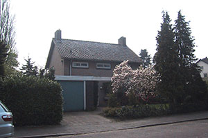 Vrijstaande woning met half-vrijstaande garage verbonden door een vaste pergola met de toegangspartij van de woning. In de voorgevel zijn drie traveeën te onderscheiden. Een travee wordt ingenomen door de toegangspartij, de tweede en derde travee door een groot venster. In de eerste bouwlaag bevindt zich in elke travee een liggend venster met midden roede. De woning heeft een zadeldak met overstek, gedekt met grauwe pannen, voorzien van een zinken dakgoot. In de achtergevel is een inpandig balkon. Het geheel is uitgevoerd in schoonmetselwerk in licht rode baksteen, bij de garage is zwarte mangaan metselsteen gebruikt.