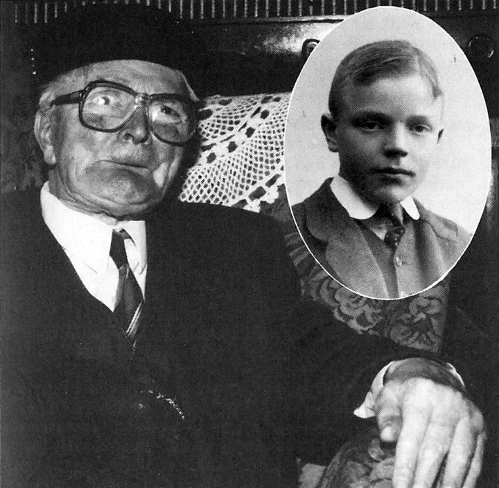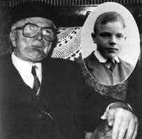 ![body=[]](documenten/beekwilder, harrie/001.jpg) Harry, geboren in 1903, hield op zijn tachtigste verjaardag een receptie aan huis. Hier poseert hij als jubilaris. Tegenwoordig woont hij in Huize De Braacken in Vught. Fotoinzet: Harry Beekwilder op veer-tienjarige leeftijd, 1917