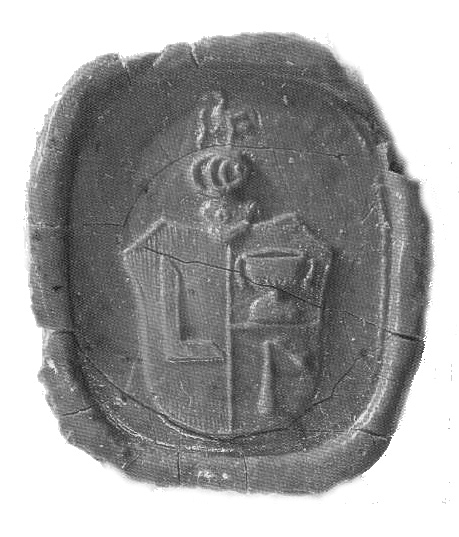 Wapen: gedeeld: I in rood een gouden winkelhaak met de lange zijde verticaal en de haaksehoek rechtsonder; II gedeeld: a in blauw een zilveren sierbeker met twee oren; b in zilver een dorsvlegel van natuurlijke kleur. Helmteken een ooievaar van natuurlijke kleur met een aaltje in de opgetrokken rechterpoot. Dekkleden rechts goud en rood, links zilver en blauw. Wapenvoerder: Leendert Willem van Beusekom Zegelt d.d. 6 nov. 1778. |