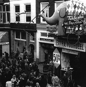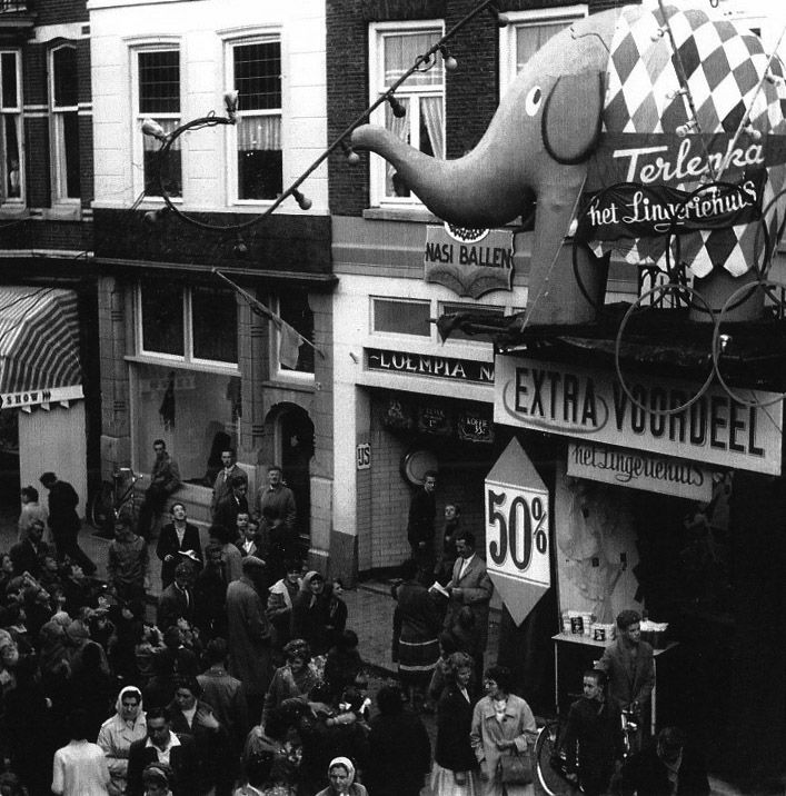 ![body=[]](documenten/boelens, catharina johanna wilhelmina (1929-2003)/003.jpg) Het Lingeriehuis, Vughterstraat 60, stuntactie begin jaren ‘60, de olifant spoot confetti.