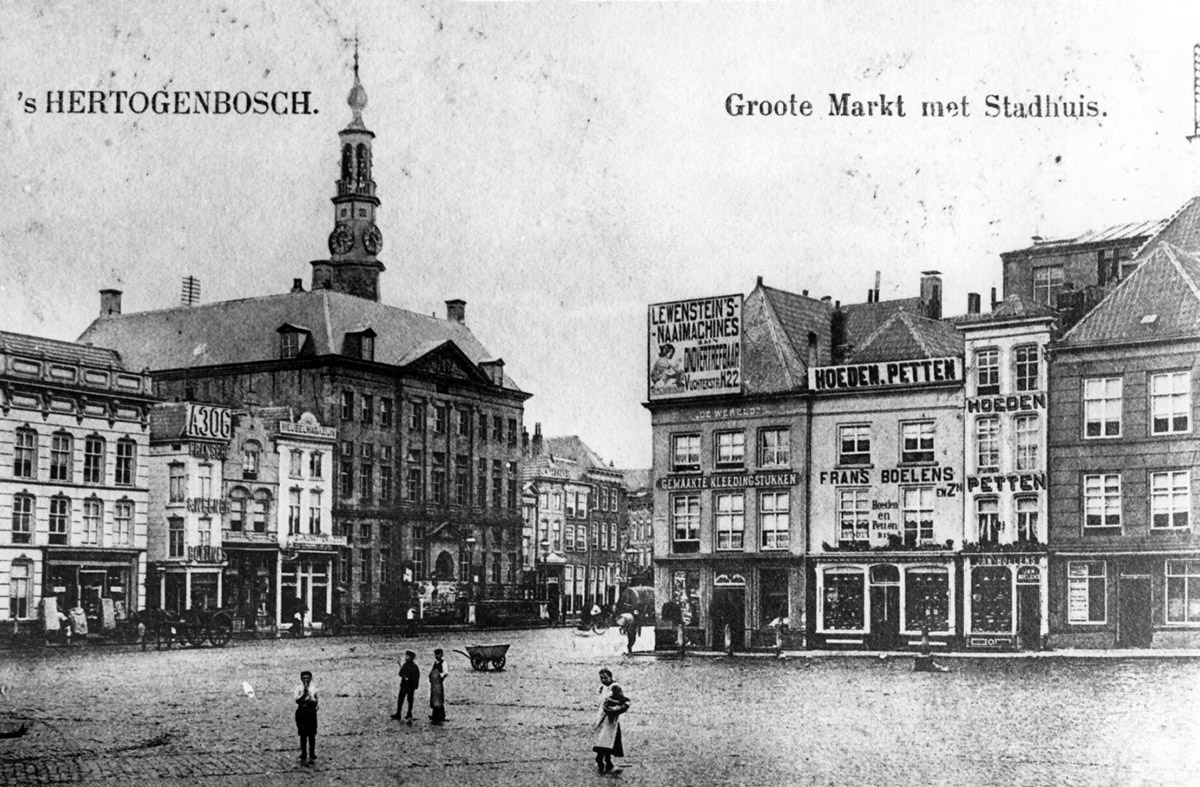 Frans koopt dus de hoeden- en pettenzaak van de firma Merx, die al jaren gevestigd was naast de zaak van zijn vader Christ. Nog ruim honderd jaar zou de naam Frans Boelens op de voorgevel van het pand blijven staan, want de zaak is pas in 1990 opgeheven.7 De zaak van vader Christ Boelens, Markt 16, was overgenomen door Frans’ oudere broer Jan Boelens.