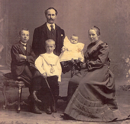 ![body=[]](documenten/boelens, franciscus mattheus (1858-1924)/002.jpg) Frans Boelens en Petronella van de Laar en hun drie oudste kinderen, v.l.n.r. Theo, Jan en Frans Boelens.