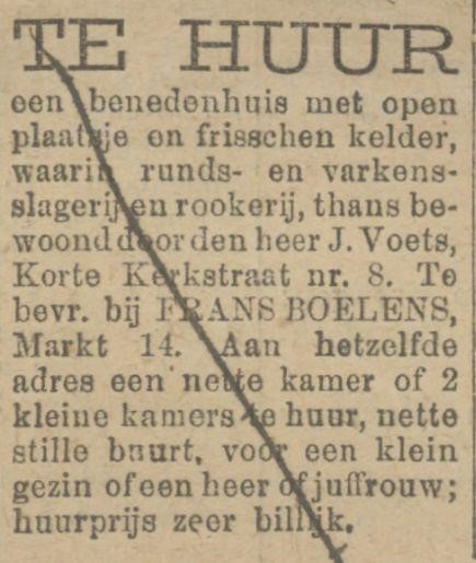 ![body=[]](documenten/boelens, franciscus mattheus (1858-1924)/003.jpg) Provinciale Noordbrabantsche en ’s-Hertogenbossche Courant 15 januari 1912: hij biedt het pand dat hij in 1900 kocht te huur aan (huisnummer veranderd).