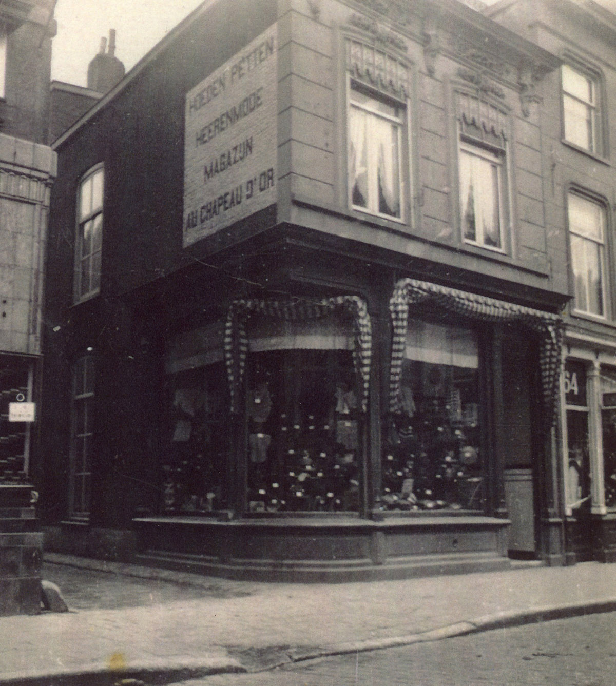 Er was nóg een hoeden- petten- en herenmodezaak in deze familie, nl. aan de Hinthamerstraat 62 / hoek Predikherenpoort 2, die kort na de dood van Frans Boelens in maart 1924 geopend werd. Het was een luxere winkel, het accent lag op fijne herenmode. Op de gevel stond de naam ‘Au Chapeau d’Or’. Schoonzuster Betsy van de Laar35 heeft in deze zaak gestaan. Betsy had eigenlijk gedacht in het klooster te gaan, maar dit was op een teleurstelling uitgelopen. Zij is ongehuwd gebleven. Op Markt 14 werd de naam ‘Au Chapeau d’Or’ ook gevoerd, maar daar heeft hij nooit op de gevel gestaan. Er stond alleen maar: ‘Frans Boelens, hoeden en petten’. Gontje de Waal was verkoopster in de Hinthamerstraat. Onduidelijk is of Betsy van de Laar hier volledig zelfstandig handelde, danwel als filiaalhoudster voor haar zuster en zwager Boelens-Van de Laar. Op papier was dit pand volledig eigendom van zoon Frans Boelens, ‘student in de rechten’. Zoon Frans Boelens, amper 21 jaar oud, koopt het pand twee weken na de dood van zijn vader en ruim 10 dagen vóór de beschrijving van diens boedel.