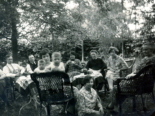 ![body=[]](documenten/boelens, franciscus mattheus (1858-1924)/008.jpg) Op ‘de Annaberg’, op de voorgrond: Jo Boelens-van den Brink met haar kinderen Frans en Annie Boelens, op de grond: Mitzi Prochaska, verder v.l.n.r.: Frans en Theo Boelens, Rie Boelens-Vermaas, Pietje Boelens-van de Laar, Bep Boelens en Marie van Beek.