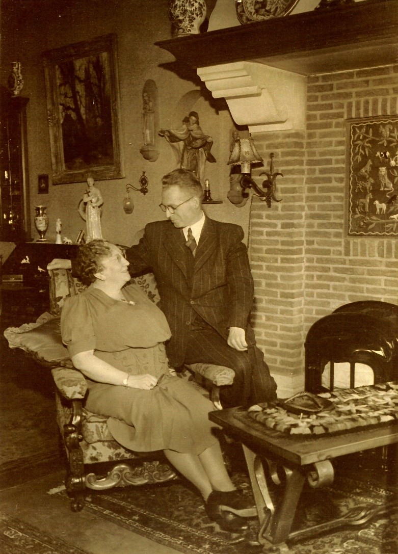 ![body=[<b>Bron:</b> Joop Boelens]](documenten/boelens, maria anna christina (1901-1989)/002.jpg) Marie en Frits van der Ven-Boelens 'op' hun salon 1e etage Markt 25