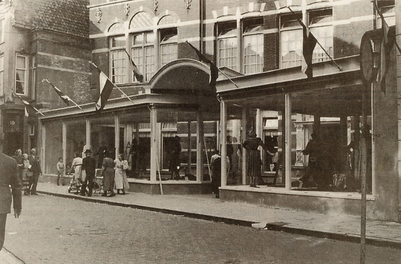 Het probleem was daar dat er geen etalagekasten waren. Vóór het pand had je, zoals nog veel te zien is in de Peperstraat, een hartstenen stoepje met paaltjes met elkaar verbonden met kettingen. Ze hebben voor elkaar gekregen bij de gemeente, dat ze op die plaats etalagekasten mochten bouwen, dus vóór het pand. Zoon Jan deed de inkoop en zoon Frits de publiciteit, advertenties, de modeshows. Hij was speaker bij de shows. Dit deed hij nog tot een paar dagen voor zijn intreding. Toen Frits Jezuïet werd is zijn zus Ans in de zaak gekomen. De later zo beroemde couturier Frank Govers was een van de etaleurs. Zijn etalages waren geweldig artistiek en echte publiekstrekkers.