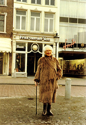 ![body=[<b>Bron:</b> Joop Boelens]](documenten/boelens, maria anna christina (1901-1989)/006.jpg) Maria Anna Christina Boelens (1901-1989) vóór Markt 25