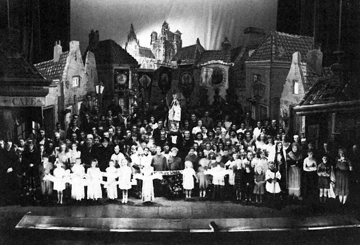 Het was kort na de oorlog. Hoe kun je de Bossche inwoners beter tot elkaar brengen dan met het opvoeren van een revue. De kapelaans Schraven, Meijers en Van de Bogaard kwamen met dat idee. Tom Brouns schreef het verhaal en Herman Moerkerk ontwierp de decors. Centraal in het Volksverhaal stond een ontluikende liefde tussen twee jongelui uit een volkbuurt. Het verhaal speelde zich af onder de ogen van de Zoete Moeder.