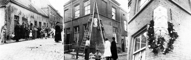 Een andere Bossche traditie, waar zovele Bosschenaren achter stonden, was de Plechtige Omgang. Je had dat moeten zien hoe onze buurt bruiste van aktiviteit. De huizen kregen een grote schoonmaak en vooral de gang werd tot anderhalve meter hoogte zwart geverfd of geteerd. 's Avonds als de omgang trok kon je van de stoep eten. Het typische was dat katholiek of protestant meeleefde. De straat was veranderd in een feestelijke doorgang voor de plechtige stoet. Je werd er stil van. Je hoorde werkelijk geen kik als de processie al zingend en biddend langskwam.
