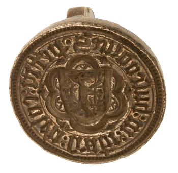 zilver, gegoten, gesneden diameter: 2.6 cm dikte: 0.3 cm hoogte: 1.9 cm gewicht: 19.7 gr Rond zegelstempel met aan de achterzijde een eenvoudig bewerkt handvat (voluutvormig met driepasvormige opening) en in gotisch schrift: peter colen. Aan de voorzijde een omschrift met aan de buitenzijde een band van een parelrand en een cirkel, en aan de binnenzijde een cirkel. Op een versierd veld omsluit een versierde zespas een vroeg-gotisch schild. Heraldische beschrijving: een klimmende vos; rechts daarven een ladder en links een gestileerde boom (bos?). |