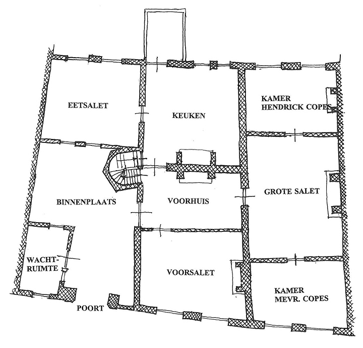 ![body=[]](img/copes, rabo otto (06).jpg) 79) Indeling van de begane grond van het huis De Munt in 1705
