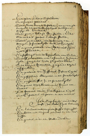 De inventaris van Josina's nalatenschap die in januari 1705 werd opgesteld, vermeldt uitvoerig al haar bezittingen, in het bijzonder de inboedel van de echtelijke woning in de Postelstraat. Tijdens zijn rondgang door het huis, in gezelschap van de erfgenamen, noteerde de notaris of diens klerk nauwgezet de voorwerpen die hij in de verschillende vertrekken aantrof (afb. 80). Weliswaar was er inmiddels een half jaar verstreken sinds de dood van de vrouw des huizes, maar we mogen aannemen dat de meeste meubels en huisraad bij de inventarisatie nog op dezelfde plaats stonden. We moeten ons echter wél realiseren dat de situatie die de notaris ter plekke aantrof, sterk verschilde van de toestand in de tijd dat Otto Copes nog in leven was. Waar in 1704 een hoogbejaarde moeder met haar twee ongehuwde kinderen van middelbare leeftijd en wat dienstpersoneel woonde, leefde in 1674 nog een betrekkelijk jong en groot gezin. De voorname positie van het gezinshoofd, de belangrijke ambten die hij bekleedde en de uitgebreide familierelaties van hem en zijn echtgenote brachten vele bezoekers over de vloer, terwijl ook de talrijke kinderschaar voor de nodige levendigheid zal hebben gezorgd. Anno 1704 zullen de bezigheden van de oudste zoon, mr. Hendrick Copes, en bezoeken van diens uitwonende broers en zusters met hun kinderen wel voor enig leven in de brouwerij hebben gezorgd, maar niet in dezelfde mate als vroeger het geval was geweest. Niettemin blijkt uit de boedelinventaris dat in de dertig jaar die sinds de dood van Otto Copes waren verstreken, de inrichting van het huis in hoofdzaak hetzelfde was gebleven.