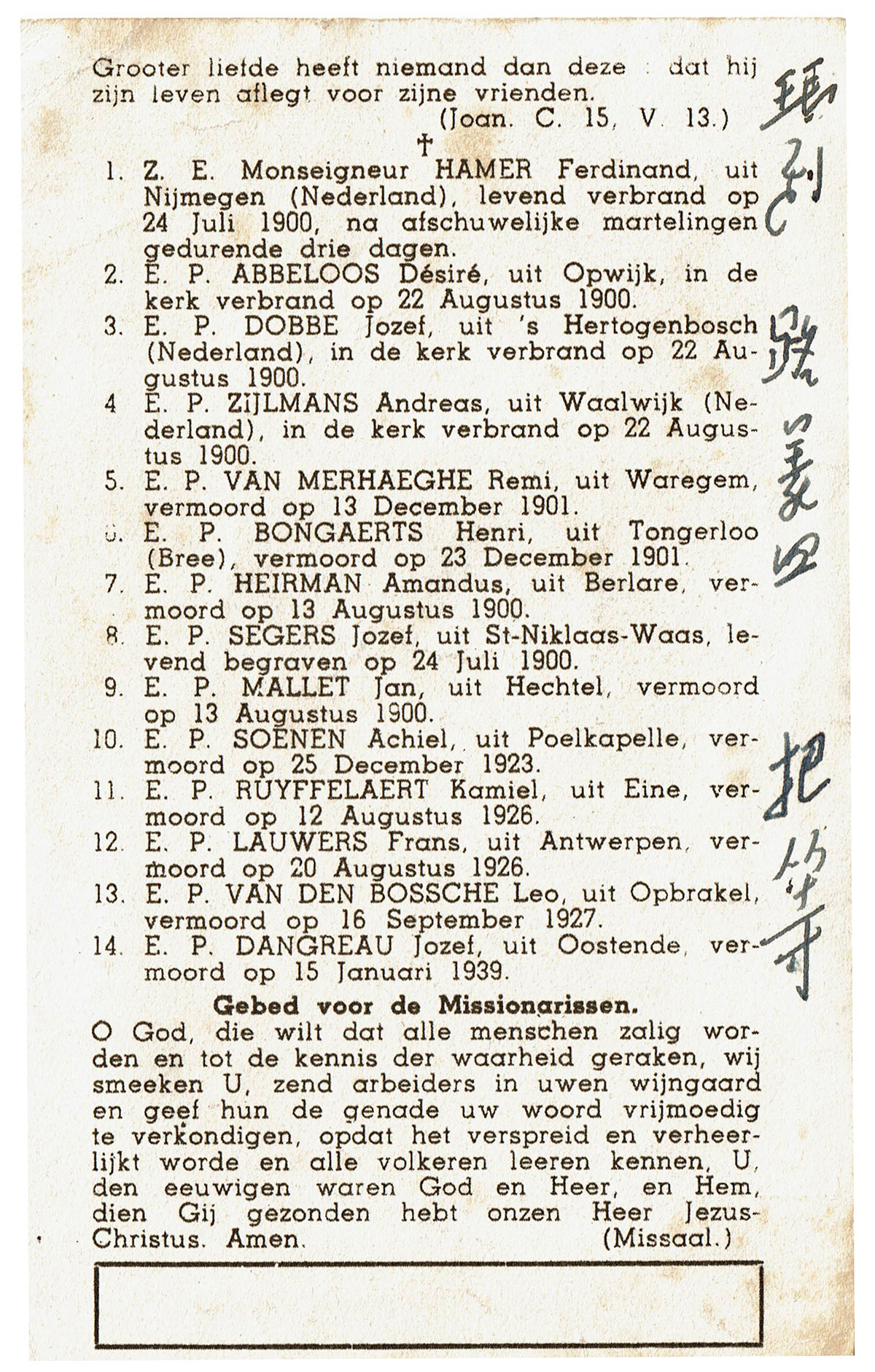 | • | Jan Meeussen Pater Désiré Abbeloos, een Opwijkse martelaar in China I en II, in: tijdschrift HOM van de Opwijkse Heemkundige vereniging 1996-3 p.2-8 en 1996-4 p.2-8 |