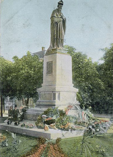 In het jaar des Heeren 1903 in het eerste jaar van het Pontificaat van Zijne Heiligheid Paus Pius X en het zesde jaar der zelfstandige regeering van Hare Majesteit Wilhelmina Koningin der Nederlanden toen sinds 1892 Zijne Doorluchtige Hoogwaardigheid monseigneur Wilhelmus van de Ven Bisschop was van ´s-Hertogenbosch en de HoogEdelgestrenge Heer Mr. A.E.J. Baron van Voorst tot Voorst sinds 1894 Commissaris van Hare Majesteit in de Provincie Noord Brabant, terwijl de Edelachtbare Heer Jhr. P.J.J.S.M. van der Does de Willebois het burgemeesterschap der hoofdstad ´s-Hertogenbosch bekleedde sedert 1884 en de Zeer Eerwaarde Heer E.D.M.G. Sanctorum vanaf 1892 Pastoor was der parochie van St. Petrus banden in de genoemde stad van ´s-Hertogenbosch heeft de ondergeteekende Commissie, daartoe in staat gesteld door de milde bijdragen der stadgenooten dit monument doen oprichten in de Kerk van de genoemde parochie ter eere Gods en tot vereeuwiging der roemrijke nagedachtenis van de ZeerEerwaarden Pater C.M. Joseph A. Dobbe en heeft het mede onderteekenende Kerkbestuur dat monument aanvaard en overgenomen den zesden October 1903,´s morgens te negen ure. Onmiddellijk daarop werd eene plechtige H. Mis opgedragen terwijl door den ZeerEerwaarden Pater Henri Raymakers, overste van het Missiehuis Sparrendaal te Vught, ordebroeder van hem, voor wiens nagedachtenis dit gedenkteken is opgericht de feestrede uitgesproken werd. Cornelis Maria Josephus A. Dobbe werd te ´s-Hertogenbosch geboren den negentienden Mei 1864 als zoon van den Heer Hugo Cornelis Dobbe en Mevrouw Maria Emma Lisa Ida van Pelt. Op denzelfden dag werd hij in de parochiekerk van St. Petrus banden door het H. Doopsel opgenomen in de Kerk van Christus en deed dáár insgelijks zijn eerste H. Communie den 14den Maart 1875. Na volbrachte lagere studiën aan de Fraterschool te ´s-Hertogenbosch (Torenstraat), aan het Gymnasium St. Louis der Jesuieten te Sittard en in het Klein Seminarie te St. Michiels-Gestel, volgde hij gedurende twee jaren den cursus der wijsbegeerte aan het Groot Seminarie van het Bisdom van ´s-Hertogenbosch te Haaren. Reeds lang voelde hij roeping om zich te wijden aan de bekeering van ongeloovigen in vreemde landen. Met goedvinden zijner oversten had hij den eersten October 1885 in de Congregatie van het Onbevlekte Hart van Maria, welke haar missiehuis had te Scheut bij Brussel in België en welker leden zich toen hoofdzakelijk wijdden aan de bekeering van Mongolië, tot het Chineesche keizerrijk behoorend. In het missiehuis zijne theologische studiën volbracht hebbend, werd hij te Leuven in België den 29en Juni 1889 tot priester gewijd. Zijn eerste plechtige H. Mis droeg hij op in de meergenoemde Kerk van St. Petrus banden. Den 13en September 1889 vertrok hij naar het verre Mongolië, bloedverwanten en vrienden verlatend om deze nooit weer te zien. Zijn werkkring Mongolië was vruchtbaar en der bevolking van die woeste streken ten zegen en ten heil. Zijn ijver was groot, zijne opoffering onbegrensd. In zijne eerste standplaats, Shiang-hoa-te, was hij eenige jaren werkzaam, waarna hij verplaatst werd naar Tíe ko tan keou in het district Heoe-pa, behoorende tot het Vicariaat van Midden Mongolië onder het bisschoppelijk bestuur van den Apostolischen Vicarius van Aertselaer. Reeds vele jaren terug waren in Mongolië en China een groot aantal secten en benden ontstaan die met den algemeenen naam van Boxers werden aangeduid en zeer vijandig gezind waren aan de Europeesche beschaving, maar nog meer aan den Christelijken Godsdienst. Meestal werden zij oogluikend gesteund en zeer dikwijls daadwerkelijk geholpen door de Chineesche en Mongoolsche Overheden. Daardoor gesterkt traden zij in den zomer van 1900 zeer vijandig op, overal de Christengemeenten te vuur en te zwaard verwoestend. De paters D. Abbeloos, geboren te Opwijk in België den 20en juli 1871 en Andreas Zijlmans, geboren te Waalwijk bij ´s-Hertogenbosch den 27sten December 1873 waren verplicht geworden te vluchten en hadden de wijk genomen naar Tíe-ko-tan-Keou waar pater Dobbe pastoor was en welke plaats eenigszins beter kon verdedigd worden. Den 22en Augustus 1900 rukten 1500 gewapende Boxers tegen den plaats op. Pater Dobbe had met zijne gezellen nog kunnen vluchten. Doch wetende dat voor zijne Christenen, als zij volhardden in het ware Geloof, het laatste uur geslagen was, wilde hij hen niet verlaten. Hij bleef op zijn post om hen in die bange ogenblikken bij te staan. De tegenstand was hopeloos. Een groot getal Christenen met Pastoor Dobbe en beide genoemde paters vluchtten in de kerk. De boxers omsingelden dat gebouw en staken het in brand, waardoor allen in den rook en de vlammen omkwamen. Zoo stierf pater Dobbe, door zijn gruwzamen vuurdood de getuigenis afleggend dat Jezus Christus, Wiens leer hij aan ongeloovigen verkondigde, is de Weg, de Waarheid en het Leven.