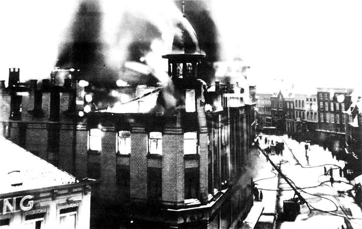 Wat mij uit mijn jeugd nog het meest is bij gebleven, is de brand bij Magazijn De Zon, de ouwe V & D. Dat was in de winter van 1938. De hele binnenstad liep er voor uit. Het was me een spektakel. De politie die ze in Den Bosch hadden maakte een afzetting: Beekwilder, Van Ingen, Meijerink en Frans de Dingen. Het vroor dat het kraakte, maar we zaten er warmpjes bij zo schroeide die zaak. De fik duurde tot de volgende morgen. Ik bleef kijken totdat ik het hoektorentje naar beneden zag sodemieteren. En de politie riep: „Achteruit mensen!” In die tijd was het materiaal nog niet zo als tegenwoordig. Zo een grote brand van zo'n mooie zaak heb ik nooit meer meegemaakt.