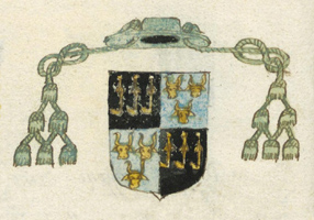 Namen en wapenen der Heeren Beêedigde Broeders soo Geestelijke en Wereltlijke van de seer oude ende seer doorluchtige Broederschap van onse Lieve Vrouw binne de stad s'Hertogenboschden hoogweerdigen heerGijsbertus Masius Bisschop van s-Hertogenbosch 1594 sterft 2 julii 1614 | 100 |