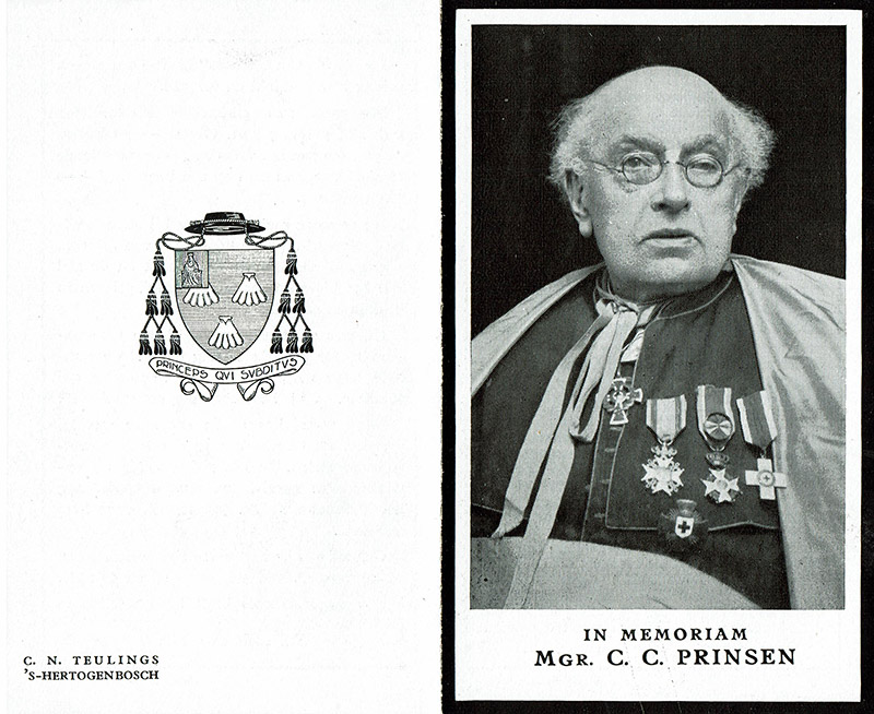 Dorenbosch en RoelandsOp zondag 2 maart 1941 overleed op negenentachtigjarige leeftijd in het Sint Antoniusgesticht, gelegen in de Hinthamerstraat, monseigneur C.C. Prinsen, de zeer geliefde oud-pastoor van de Sint Jacobskerk en proost van het kapittel der kathedrale basiliek. Hij was een sociaal priester bij uitnemendheid. Bijzondere aandacht had hij voor het katholieke onderwijs en hij was ook de eerste die in zijn parochie in 1905 een patronaat oprichtte, zowel voor jongens als voor meisjes. Door de parochianen is in 1936 een blijvend teken van hun dankbaarheid geplaatst op het plein voor de Sint Jacobskerk, een monument van de beeldhouwer Alkbert Termote, voorstellend de Goede Herder. Monseigneur Prinsen werd ere-burger van de stad, ridder in de orde van de Nederlandsche Leeuw en officier in de orde van Oranje-Nassau.