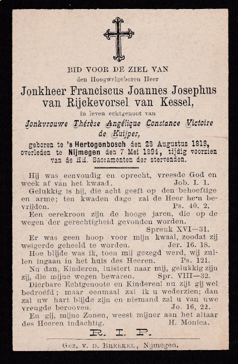 RedactieJhr. Franciscus Johannes Josephus van Rijckevorsel van KesselNederland's Adelsboek (1904) 367 |