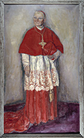 | 4. | In de kloosterkerk werd in 1939 op het graf van kardinaal Van Rossum een beeld geplaatst naar ontwerp van professor Enrico Quattrini. Het beeld is vorm gegeven in een zeer traditionele, barokke stijl. Uit: Gerardusklok, maart 2001. |