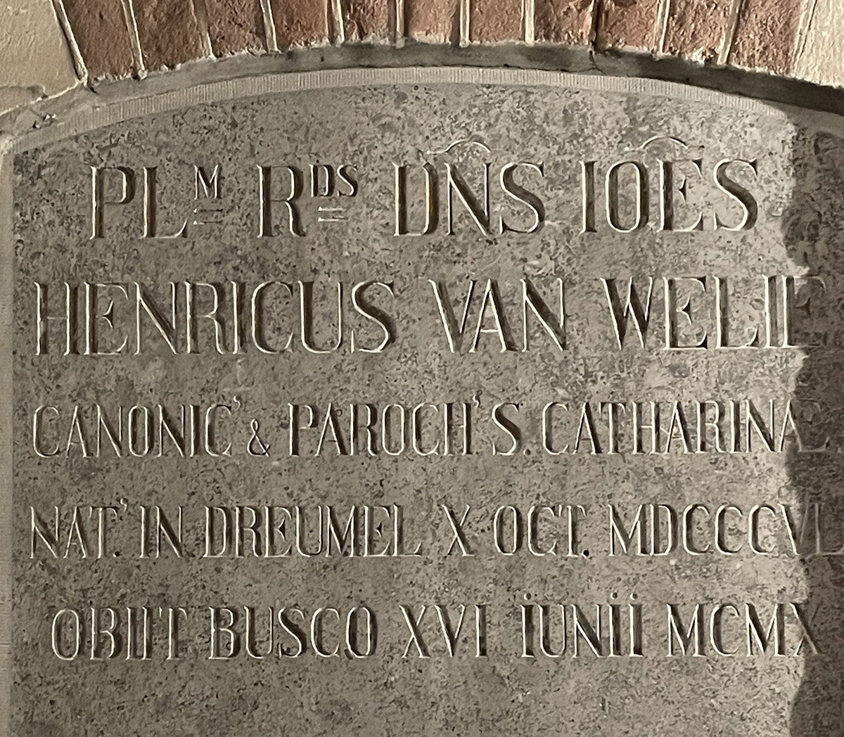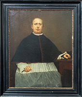 De priesterwijding van Joannes van Welie vond plaats in 's-Hertogenbosch op 3 juni 1871, en wel door Mgr. Zwijsen. Van Welie was korte tijd kapelaan in Tilburg, in de Dionysiusparochie op 't Heike, bij pastoor J. van der Lee, met als opdracht het catechetisch onderwijs te verzorgen aan de jeugd. Dit catechesewerk deed hij 18 jaar. Op 6 januari 1890 volgde zijn benoeming tot pastoor in Vierlingsbeek. Na een uitdrukkelijk verzoek van de bisschop kwam hij op 12 augustus 1892 naar 's-Hertogenbosch. Hij werd pastoor van de Sint-Cathrienparochie. In 1895 werd hij geïnstalleerd tot kanunnik van het kathedraal kapittel en even later provisor van het seminarie. Hij overleed te 's-Hertogenbosch op 16 juni 1910 en op 20 juni volgde zijn begrafenis in Orthen. In De Noordbrabanter, het Noordbrabantsch Dagblad van 17 juni 1910 schreef Dr. Xav. Smits een In Memoriam. Op de dag van zijn plotseling overlijden bezocht de pastoor nog in de middag de in aanbouw zijnde patronaatslokalen naast zijn kerk! Zijn motto was: 'Hillarem datorem diligit Deus!' (2 Kor. 9,7: 'God houdt van een blijmoedige gever'). Zijn predicaties vanaf de kansel tijdens de H. Eucharistie wekten enthousiasme. Ze waren steeds geestig, opgewekt en oorspronkelijk en daarom zo geliefd. Vanuit de hele stad kwamen gelovigen op zondagmorgen om 08.00 uur de kerk. Dagelijks ging hij naar de gevangenis voor troostwijk werk, ondanks zijn hartkwaal. PortretHet portret kwam kort na 1900 tot stand. Het meet 115 bij 94 cm. Pastoor van Welie is gekleed als kanunnik en zijn ene hand rust op een tafeltje, waarop een brevier en bonnet liggen. | 363 |