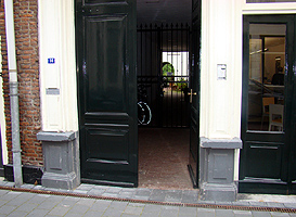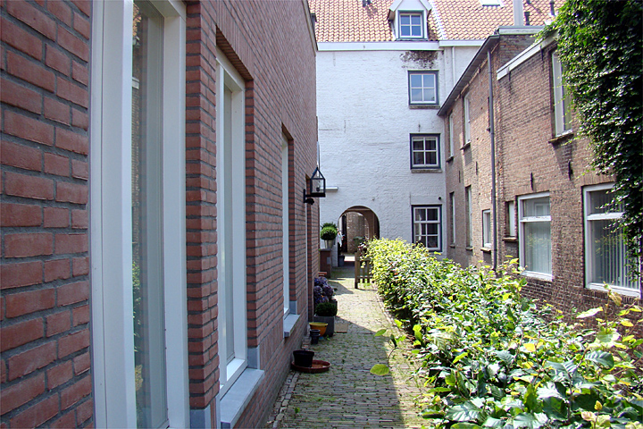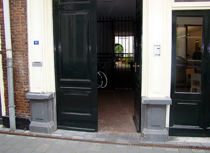 Tussen Sint-Jorisstraat 14 en 16 ligt een onbenoemd steegje. In dit steegje is een dubbele poort aangebracht, die deel uitmaakt van de gevel van pand nr. 16. Na drie meter wordt het afgesloten met een ijzeren hekwerk. Het is over een lengte van tien meter overbouwd; daarachter ligt een binnenplaats. Vervolgens komt er een doorgang van een huis met daarachter een open terrein aan de Binnendieze (Korte Vughterstroom) en tevens de grote, glazen achterzijde van het Stadskantoor. Het huis waarin het steegje zich bevindt, had vroeger de naam 'Den Roeland'. Het steegje behoort tot het middeleeuwse stratenpatroon. Vóór 1939 ontsloot het werkplaatsen, pakhuizen en een aantal kleine woningen. In 1939 vond hier een grote instorting van een woning plaats. In pand nummer 14 vestigden zich later de drukkerij en kantoren van de Katholieke Illustratie. Via het pand op nummer 12 kon men in de 17e eeuw een achterliggende sluipkerk bereiken met de devote naam Bidplaats der Zeven Weeën. Die schuilkerk was ook bereikbaar vanuit het pand aan de Vughterstraat met nummer 54. Links van de dubbele poort aan de Sint-Jorisstraat 14 en 16 is een gevelsteentje aangebracht met een tekst van Domien van Gent: 'Gaoi mar rechtdeur'. Deze Domien van Gent was in de vijftiger en zestiger jaren van de vorige eeuw een promotor van Brabantse kunst en pleitbezorger van het Bossche dialect. In een muur van een pand aan het onbenoemde steegje bevindt zich, naast een plaquette met Sint-Joris en de draak, nog een tekst van hem: 'Wè denkte'. |