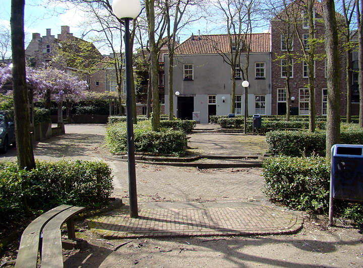 In de de jaren zestig van deze eeuw is de wijk De Pijp verdwenen. Het hele gebied werd onherkenbaar vernield door sloop, demping van de Binnendieze en nieuwbouw. Er werd onder meer een nieuwe straat aangelegd, die naar een van de geestelijken van de - ook al verdwenen - waterstaatskerk Sint-Pieter werd genoemd: de Pastoor de Kroonstraat. Het gebied tussen de Pastoor de Kroonstraat, Geertruikerkhof en de Orthenstraat veranderde ook helemaal. Slechts een deel van de huizen aan de Orthenstraat bleef staan. Aan de Pastoor de Kroonstraat kwamen flats. Het binnenterrein kreeg een ondergrondse parkeergarage en bovengronds eveneens parkeergelegenheid en wat groen. Deze binnenplaats moest een naam krijgen, zoals dat ook met alle straten en wegen in onze stad het geval is.