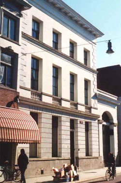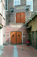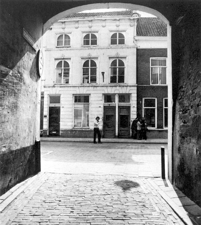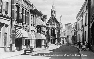 De gevelrij in de Hinthamerstraat is mooi. De panden zijn van verschillende grootte en ook de bouwstijlen zijn sterk verschillend. De gevels vormen een fraaie rij, al kun je dat eigenlijk pas goed zien als je er enige afstand van neemt. Vanaf de straat omhoogkijkend komen de gevels niet echt tot hum recht. Het meest veranderen de onderpuien van de huizen. In het begin van deze eeuw kende de Hinthamerstraat nog vele woningen, maar deze zijn praktisch verdwenen. Er is nog slechts een enkel kantoor; de meeste huizen zijn ingericht tot winkel. Tegenover de Sint-Jacobskerk is dat echter niet het geval. Recht tegenover de kerk bevindt zich, op nummer 164, de grotendeels 17e eeuwse Gansenpoort met een opmerkelijk hoog schilddak. Het pand met haar pilastergevel heeft natuurstenen korintische kolossaalpilasters. Het pand is gebouwd door Johan Gans die na 1629 als een soort projectontwikkelaar eigenaar werd van voormalige kloostercomplexen en deze in kleinere kavels verkocht. Hij is er rijk mee geworden. Oorspronkelijk was het pand inderdaad een poort: men kon er doorheen lopen om op die wijze bij een aantal huisjes te komen die langs de Binnendieze stonden. Maar die huisjes zijn afgebroken, de Binnendieze gedempt en de doorgang in de Gansenpoort is verdwenen. Later bewoonden de Congregatie der Zusters van Liefde van O.L. Vrouw van Barmhartigheid (de Zusters van Tilburg) het pand als klooster. De Ganzenpoort werd Huize St.-Antonius, De congregatie, die zich met het geven van onderwijs bezighield, kwam in het midden van de 19e eeuw naar 's-Hertogenbosch en begon er in de Hinthamerstraat een bewaarschool. Later werden er door hen ook andere scholen gesticht. Vooral in de St.-Jacobsparochie waren zij actief. Rechts van De Gansenpoort/Huize St.-Anthonius werden door de Zusters drie kleine panden aangekocht: De Rooie Ton, het Haasken en Het Molenijzer. Ze werden verbouwd tot één groot gebouw. Later verbouwden de Zusters het opnieuw tot één grote meisjesschool. Maar de meisjes verdwenen al jaren geleden. het schoolgebouw werd later nog gebruikt door de Sociale Academie als lesgebouw. Enkele jaren geleden werd het hele pand opnieuw verbouwd. Het werd ingericht tot appartementen en sedertdien kent Het Molenijzer weer bewoners. De twee panden aan de Hinthamerstraat hebben hun uiterlijk behouden. Zij passen bijzonder goed in de gehele gevelrij van deze winkelstraat. |