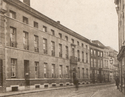 Het Neysensgasthuis, met een houten voorgevel, z.j.A. Oltmans ()(aquarel, 25.5 x 17.5 cm) Prentenkabinet Bibliotheek Provinciaal Genootschap, 's-Hertogenbosch In 1345 gesticht, voor dertien arme vrouwen, door Hendrik van Neynsel, rector van het altaar van St. Catharina in de St. Janskerk. Het gasthuis lag in de Hinthamerstraat links van de Illustre Lieve Vrouwe Broederschap. Het was als zodanig in gebruik tot 1811 en werd omstreeks 1840 afgebroken. |
