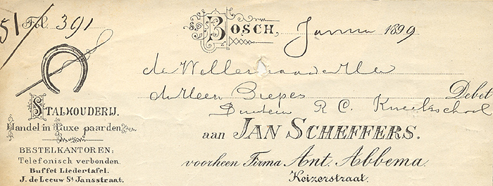 | 1908 | C.G. Mooijman (handelaar in luxe paarden en stalhoud.) - J.A.M. Scheffers (stalhouder) |
