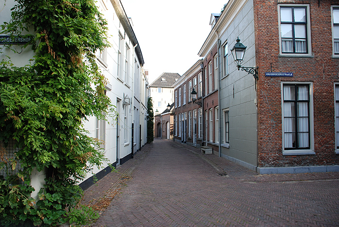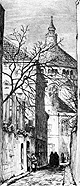 KRUISBROEDERSSTRAATJES. Het eene, dat in de St. Jorisstraat uitmondt, was in de 18e eeuw slechts eene poort, de Kruisbroederspoort, met twee kamers er boven. | 77 |