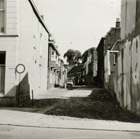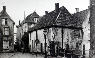 De Kuipertjeswal in 1925. Het hoekhuis links stond er nog en de Diest was nog niet gedempt. De Bossche vestingmuren hadden meerdere verdedigingstorens; de Kuipertjeswal kende er ook een, die droeg de naam Kruisbroederstoren. In de buurt daarvan lag ook een waterput waarvan een overblijfsel werd gevonden bij de vernieuwing van het Kruisbroedershof in 1972. | 88 |