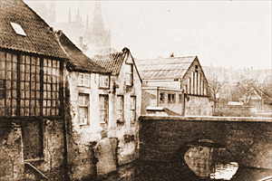 De Bossche straten en steegjes doorkruisend, krijg je een steeds veranderde kijk op de Sint-Jan. Steeds weer komt verrassend deze kerk tevoorschijn uit de haar omringende huizen. Eén van deze plekjes is de Louwsche Poort. In dit straatje, vlak vóór de brug bij de Binnendieze, lag vanaf het begin van de zestiende eeuw het Refugiehuis van de abdij Mariëndonk uit Heusden. Na de val van Den Bosch in 1629 kwamen alle religieuze goederen in overheidshanden. Zo ook dit gebouw. In 1652 kwam het in bezit van notaris Pieter de louw. Aan deze notaris heeft de straat haar naam te danken: Louwsche Poort. Maar het gehele gebouw is inmiddels verdwenen. In de loop der eeuwen heeft het plaats moeten maken voor een steeds wisselende bebouwing. Zo werd er veertig jaar geleden nog een school voor Huishoud- en Nijverheidsonderwijs gebouwd, waarvan later ook het Baanlozenproject van de Sociale Dienst gebruik maakte. Sedert enige jaren staan er op dit markante punt in het straatje bij de Binnendieze stadsvilla's. We passeren de brug over de Binnendieze, die hier volgens het Structuurplan uit 1964 geheel gedempt zou worden; er zou op deze plaats een verbindingsweg gerealiseerd worden in de richting van het Burgemeester Loeffplein. Het is niet doorgegaan en gelukkig is de gehele Binnendieze gerestaureerd. Dit deel van het stadsriviertje kent bijna geen overkluizingen: het water ligt er open. Wel bevinden zich er een aantal bruggen. Vanaf de brug in de Louwsche Poort zien we in de richting van de Sint-Jozefstraat één van de oudste bruggen over de Binnendieze. Deze bevindt zich achter het Zwanenbroedershuis en behoort ook aan deze Broederschap. Een van beide leuningen van deze brug is iets verhoogd: daarin bevond zich een Mariabeeldje. De Zwanenbroeders hebben in bestaan wel meer panden ten geschenke gekregen, maar deze werden verhuurd of verkocht. In 1483 maakte Gijsbert van der Poorten zijn testament op, waarbij hij zijn huis in de Hinthamerstraat aan de Broederschap vermaakte. Nu beschikte men over een groot gebouw voor vergaderingen en de jaarlijkse maaltijd. Het vijftiende eeuwse pand werd in de negentiende eeuw vervangen door een moderner gebouw naar een ontwerp van de Bossche architect J.H. Laffertée en waarvoor in 1846 de eerste steen werd gelegd. Dit pand is inmiddels gerestaureerd en ook de brug achter het pand, bij de Binnendieze, is aangepakt. DoorkijkjesAls we de Binnendieze gepasseerd zijn, kunnen we geen blik meer werpen op de gotische kathedraal. Voorheen kon dat wel, maar door de moderne bebouwing is er thans enkel nog een stukje van de toren van de gotische kerk te zien. Zou er bij het verlenen van bouwvergunningen in de Bossche binnenstad niet gelet dienen te worden dat deze eeuwenoude doorkijkjes in de toekomst gehandhaafd blijven? In vroeger tijden torenden de kerken boven alle kleine huizen uit. Maar vooral de laatste decennia verschijnen er grote bouwwerken in de stad die verhinderen dat men bij speur- of wandeltochten door de stad telkens weer 'onze ouwe Sint-Jan' tegenkomt. |