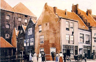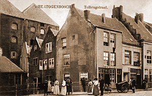 Een foto van bijna een eeuw geleden die je wel even de wenkbrauwen doet fronsen: Is dit 's-Hertogenbosch? Inderdaad, dit is de Marktstraat, en niet de Tolbrugstraat zoals er boven aan deze ansichtkaart vermeld staat. Het water dat achter de brugleuning op de foto stroomt, is de Binnendieze. Het stadsriviertje was de binnen de stadsmuren gelegen delta van de rivieren Aa en Dommel. En dit stuk bij de Marktstraat viel nog binnen de eerste stadsmuren uit het begin van de dertiende eeuw: het oudste stuk van de Binnendieze. Terwijl echter andere delen van de Binnendieze de laatste vijfentwintig jaar gerestaureerd zijn, is dit oudste stuk ruim dertig jaar geleden gedempt. De Marktstraat gaf toegang tot de wijk De Pijp. Het was een echte volkswijk waar velen ambachtelijk werk verrichtten, waar een kazerne stond, waar danshuizen en cafés plezier en vreugde aan velen brachten. Maar al vóór de Tweede Wereldoorlog kwam er een saneringsplan van de gemeentelijke tekentafel. Nog éénmaal zou de wijk een groot feest kennen: bij de bevrijdingsfeesten werd een 'Rue de la Pipe' in geheel Franse stijl gerealiseerd, al voeren er toen wel 'Venetiaanse' gondels over de Binnendieze. Deze sanering werd daadwerkelijk in de jaren zestig uitgevoerd. De Pijpbewoners hadden toen allemaal inmiddels huisvesting elders gevonden. Alle huizen werden afgebroken, de Binnendieze gedempt en er werd plaats gemaakt voor een nieuw winkelcentrum, een politiebureau, uitbreidingen van het ziekenhuis en een parkeergarage. De rooilijnen zouden eveneens veranderen. Zelfs straatnamen verdwenen. Terwijl thans duizenden jaarlijks de Binnendieze bevaren zijn er maar weinig Bosschenaren die door middel van een boot dit stadsdeel, De Pijp, hebben gekend. Ook het sfeervolle plekje dat door middel van een ansichtkaart ook bij velen buiten de stad bekend geraakt was op de hoek van de Marktstraat en de Suikerstraat, is totaal verdwenen. De verschillende bouwstijlen, gevelindelingen en -bekroningen hebben plaatsgemaakt voor de kenmerkende eenvoud van de Bossche School. architectenburo Wijnen en Senders ontwierp de bebouwing en in 1972 werden de winkels en de erboven gelegen kantoren op de hoek Markstraat en Burg. Loeffplein gerealiseerd. Maar inmiddels is men anders aan gaan kijken tegen de bebouwing uit de jaren zestig. Het politiebureau is verdwenen en ook het Burg. Loeffplein ondergaat een grote verandering. Wat men echter beloofde bij de presentatie van de Arena-plannen is helaas niet gebeurd: de Binnendieze zou gedeeltelijk weer teruggebracht worden in het stadsdeel. |
