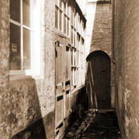 Tussen Hinthamerstraat 202 en 204 bevindt zich een steegje, dat de naam Achter den Ossenkop heeft gedragen. Het eerste gedeelte van het ondiepe en smalle straatje loopt onder een doorgang door. Vroeger liep het dood op een inmiddels gedempte tak van de Binnendieze, de Doode Stroom. Deze zijtak was de oude, natuurlijke bedding van de rivier De Aa, die bij De Kleine Hekel (ter hoogte van Sluis 0) de stad binnenkwam en vanaf de Schilderstraat verder liep via de Groote Stroom. In de periode 1923 en 1929 is de Doode Stroom in fasen gedempt; later was hier een goudsmederij gevestigd en werd een gedeelte bebouwd met woonhuizen. Het gangetje was genoemd naar het hoekpand Den Ossenkop, Hinthamerstraat 202; het achterhuis van dit gebouw droeg de naam In de Roos. In de late middeleeuwen heeft het steegje nog de naam Achter den Swarten Leeuw gehad; vernoemd naar de woning 't Swart Leeuwke, Hinthamerstraat 204. Volgens Mosmans stichtte in 1393 ene Arnoldus Croy in Achter den Swarten Leeuw een gasthuis voor dertien arme vrouwen. Net als veel andere Bossche gasthuizen, werd het per decreet van de Franse Prefect in 1811 opgeheven, en met andere liefdadige instellingen in 1814 ondergebracht onder één bestuur, 'De Godshuizen'. Het steegje is bewoond en vrij toegankelijk, het loopt dood op bebouwing. Het straatje heeft geen straatnaambord, de paar adressen behoren tegenwoordig tot de Hinthamerstraat. Op de stadskaart van J.B. Drossaers (ca 1830) en die van Jos van Hagens (1890) staat de naam van het steegje nog wel vermeld. |
