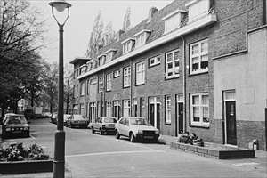 In het begin van de jaren twintig werden op de Muntel de huizen aan de Pelssingel gebouwd naar ontwerpen van de architecten H.W. Valk en A.J. van Kempen. Kenmerkend voor de Muntel zijn de door woningbouwverenigingen gebouwde woningcomplexen: op zichzelf staande gesloten bouwblokken, waarin een of meer poortgebouwen toegang geven tot de binnenterreinen. Op de linkerfoto is aan de rechterzijde nog de overbouwde toegang te zien tot het Gheert van Calcalplein, gebouwd door - zoals in grote letters staat aangegeven - de Cop. Bouwvereeniging 'Eigen Bezit'. Door middel van een gedenksteen uit 1926 wordt nog eens op dit feit gewezen. Door deze bouwverenigingen, die voor hun eigen leden bouwden, ontstonden er binnen de wijk als het ware een soort enclaves, bewoond door een bepaalde groepering: katholieken, protestanten, PTT-beambten, onderofficieren en dergelijke. Lang hebben deze groeperingen bepaalde straten een eigen karakter gegeven. De straatnaam Pelssingel werd door de gemeenteraad in 1921 aan de straat gegeven. Zij is genoemd naar Theodorus Pels (1848-1920) die op 23 augustus 1890 tot gemeentesecretaris van Den Bosch werd benoemd en deze functie tot aan zijn dood op 72-jarige leeftijd uitoefende. In de jaren twintig leek rivier de Aa heel wat breder dan nu het geval is. Dat kwam doordat er toen nog een zijtak van deze rivier, een meander, langs de Pelssingel stroomde. Vanaf het eind van de vorige eeuw was in deze zijtak heel lang de zwemkom gevestigd, waar menig Bosschenaar de zwemkunst onder de knie heeft gekregen. Later werd deze tak gedempt en kon er op het terrein gebouwd worden. Er werd toen - voor de Tweede Wereldoorlog - een rangeerterrein voor trams aangelegd. Na de oorlog kreeg ook deze zijde van de Pelssingel bebouwing. Hier werden tijdelijke woningen gebouwd. Het waren 'noodwoningen' en 'bungalows', gebouwd door Bredero's Bouwbedrijven die een eigen, apart nummer kregen. De noodwoningen kregen de letters NW voor het huisnummer, de wat luxere bungalows de letter B. Honderden noodwoningen en bungalows werden aan het eind van de jaren veertig gebouwd in Den Bosch. Deels om tegemoet te komen aan de in oktober 1944 verwoeste huizen, anderzijds om aan de enorme vraag om woonruimte tegemoet te komen. De meeste noodwoningen zijn verdwenen, slechts hier aan de Pelssingel staat een groepje van drie voormalige woningen, thans gezamenlijk in gebruik als EHBO-oefenruimte. De riantere vorm van de noodwoningen, de 'bungalows' aan de Pelssingel hebben een forse opknapbeurt ondergaan en kunnen nog een aantal jaren mee. Op het resterende deel van het opgehoogde terrein waren ondermeer de kassen van de Hoge Agrarische School gevestigd. Nu zijn hier aan de Munteltuinen recentelijk ook woningen gebouwd. |