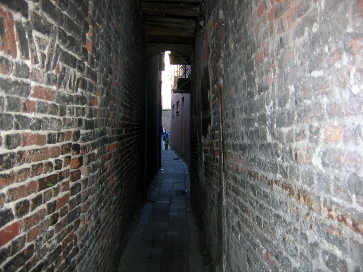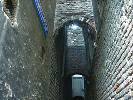 ACHTER DEN ENGELSCHEN PISPOT. In de Kerkstraat. Heet eigenlijk Trompengangske, (naar het hoekhuis), alsook Wassenbergstraastje. Een dwars-gangetje, dat vroeger van hier uit, achter de huizen De Waterpot en de Waterkraan schoot, is het eigenlijk Achter den Pispot". | 77 |