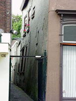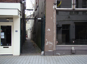 Het Slijpersstraatje is een zijsteegje, tussen Hinthamerstraat 136 en 138. Was het vroeger een doodlopend steegje, zoals 's-Hertogenbosch er vele heeft gekend, tegenwoordig loopt het uit op een soort pad, waarlangs men de Binnendieze en het gerestaureerde Poorthuis van het voormalige klooster van de zusters van Orthen kan bereiken. Aanvankelijk loopt het steegje recht, maar maakt op het einde een haakse bocht naar links. Het eerste gedeelte van het steegje behoort tot de historische bebouwing. Het grootste deel van zijn bestaan heeft het steegje Sleepersstraatje geheten. Aan het begin van de 20ste eeuw heeft het enkele jaren ook nog de naam Achter de Gapert gehad, genoemd naar het huis 'De Gapert', Hinthamerstraat 136. Waar de namen Sleepersstraatje en Slijpersstraatje vandaan komen, is niet bekend. Het steegje is bewoond. Overdag aan beide zijden toegankelijk, is het 's avonds aan de zijde van de Hinthamerstraat met een stalen spijlenhek afgesloten. Bij het hek is een hardstenen schamppaal. In het pand Hinthamerstraat 138 met de historische naam De Drie Halve Manen, naast het Slijpersstraatje, heeft familiebedrijf F. Vorst-Hagemans tussen 1915 en 1980 een behangerij en stoffeerderij gehad. Het gebouw is een aantal malen in het nieuws gekomen door de ontdekking van bijzondere, vijftiende- en zestiende-eeuwse plafond- en muurschilderingen (zie onder meer Bossche Bladen 2006, 2). Behalve in het pand Orthenstraat 41, werden gelijksoortige taferelen nergens eerder aangetroffen. Bouwhistorici Maike Tjon A Kauw en Harriën van Dijk van de BAM (Bouwhistorie, Archeologie en Monumenten) doen al enkele jaren onderzoek naar deze unieke schilderingen. |